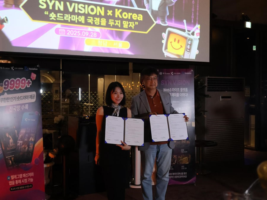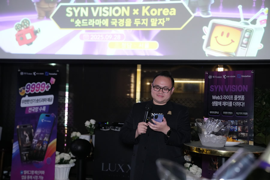 首尔,2025年9月28日 —— 面向全球市场的短剧RWA娱乐平台SYN VISION(新维视界) 于首尔江南清潭举办韩国发布会,活动列入KBW(Korea Blockchain Week)官方日程。在行业与资本的聚光灯下,SYN VISION宣布两项关键进展:其一,荣获全球头部区块链数据与媒体平台非小号(Feixiaohao.ai)Alpha项目评选;其二,与 AI × Web3 内容生成平台PrompTale签署战略合作(该平台已入选 Google for Startups Cloud Program,并加入 NVIDIA Inception Program)。这两项里程碑事件,标志着SYN VISION的技术路线、商业化路径与全球化战略正式汇聚成“可验证的增长飞轮”。