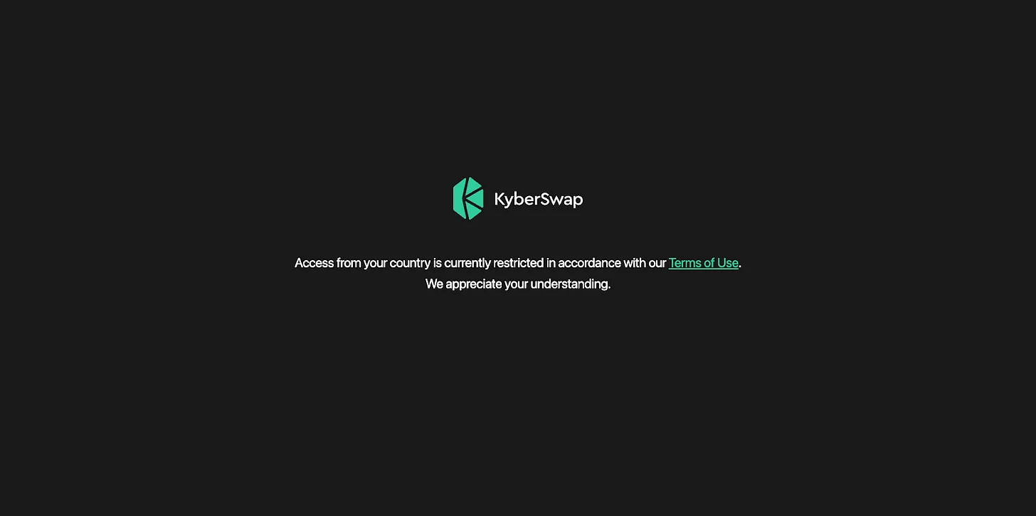 KyberSwap 限制越南用户访问。来源:KyberSwap