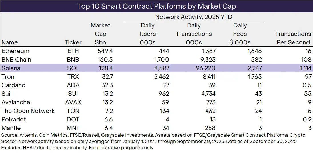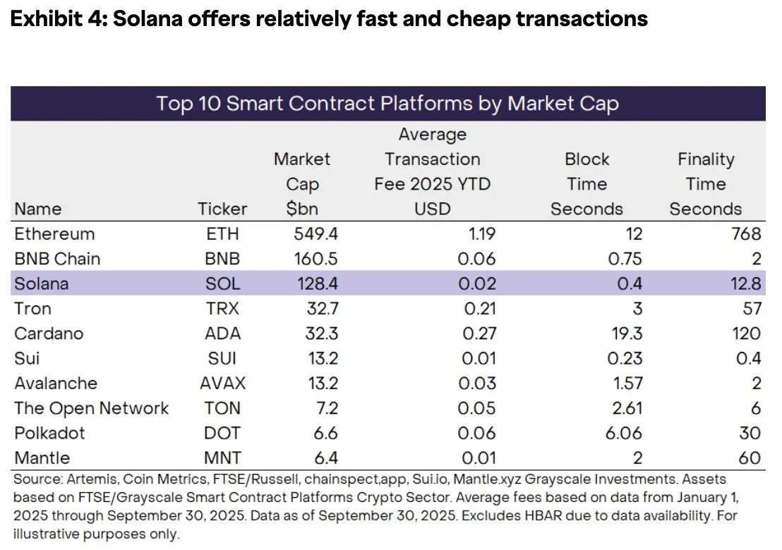 灰度認為:Solana 在願景上表現為一個「面向所有人開放的快速、低價的區塊鏈」。但其特定的設計為其競爭對手在某些用例中搶占或保留市場份額留下了空間。