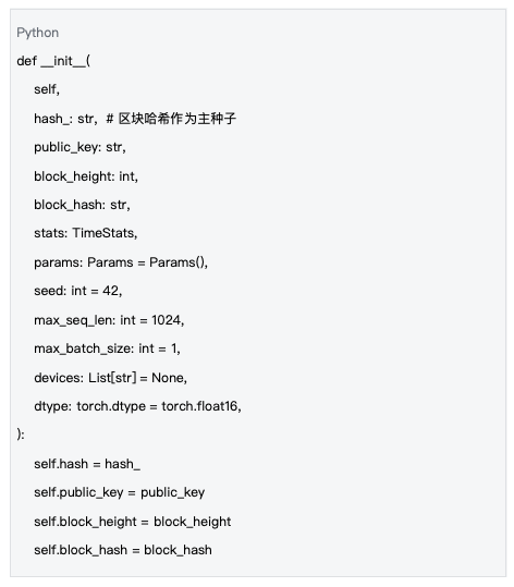 每个计算任务都从统一的LLaMA模型架构开始,通过区块哈希确定性初始化权重。这种设计确保了所有节点使用相同的模型结构和初始权重,从而保证计算结果的一致性。