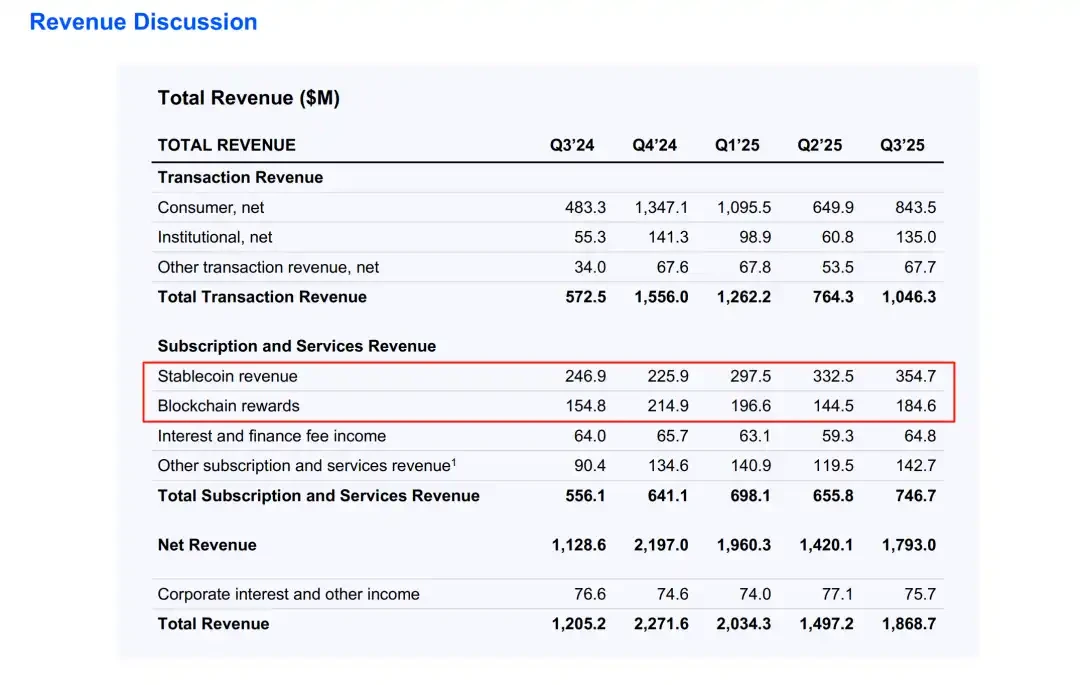 这份 Q3 财报是里程碑,总营收 18.7 亿美元,净利润 4.33 亿美元,但数字背后是帝国蓝图——从波动依赖,到稳定收租;从交易所,到全栈枢纽。