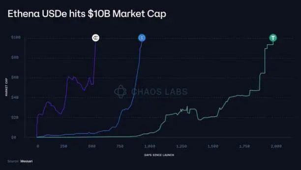 过去仅属于交易部门和机构的收益产品,如今已走入主流。USDe 成为最快达到 100 亿美元总锁仓价值的稳定币。