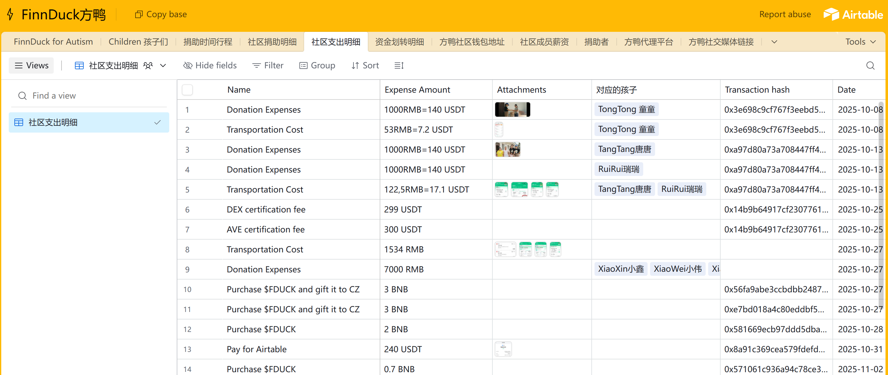 出发点和理念上,方鸭和其他公益平台没有区别,捐赠人自由选择。但透明度上,我们公开了 后台面板 ,其中包含了捐助时间行程、脱敏后的受捐人情况和捐赠者昵称、社区捐助和支出明细、社区钱包地址等一系列信息。