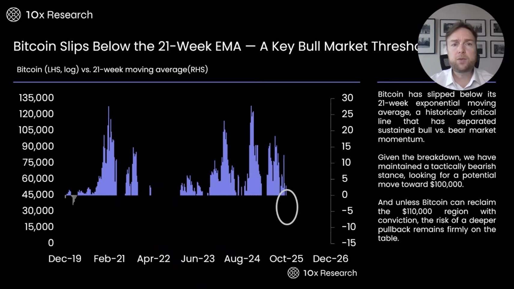 比特币跌破 21 周 EMA ——牛市的关键门槛