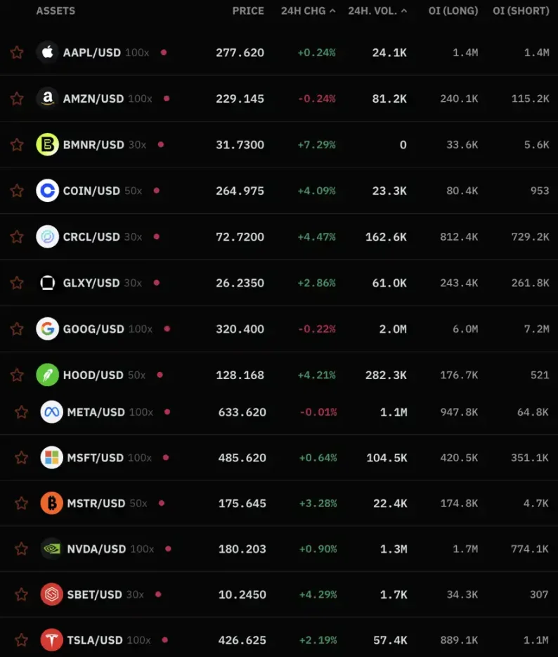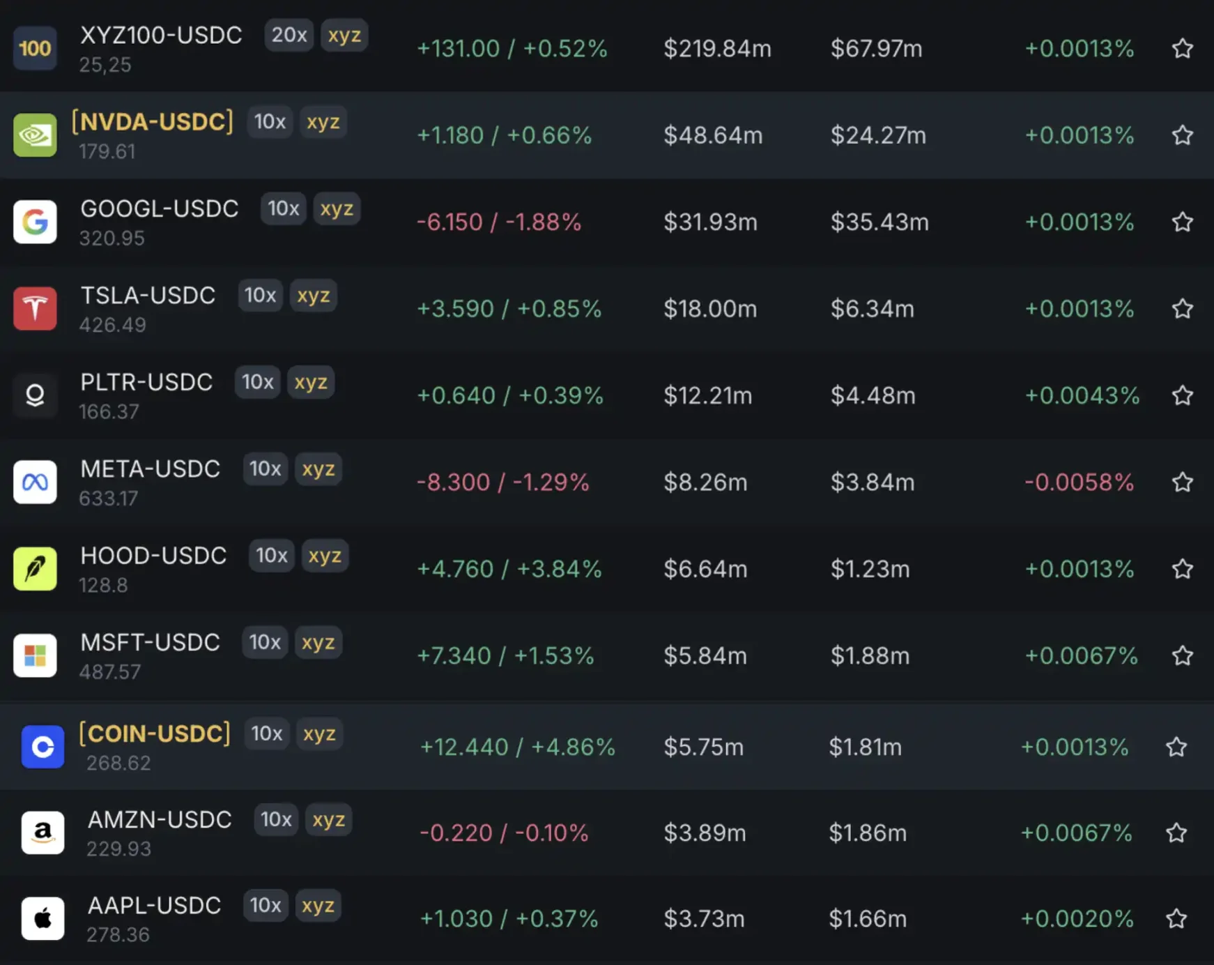 包括加密行業裡各大 Perp DEX 像是 Hyperliquid、Trade.xyz、Ostium、Lighter 都已經上線了美股的永續合約交易。