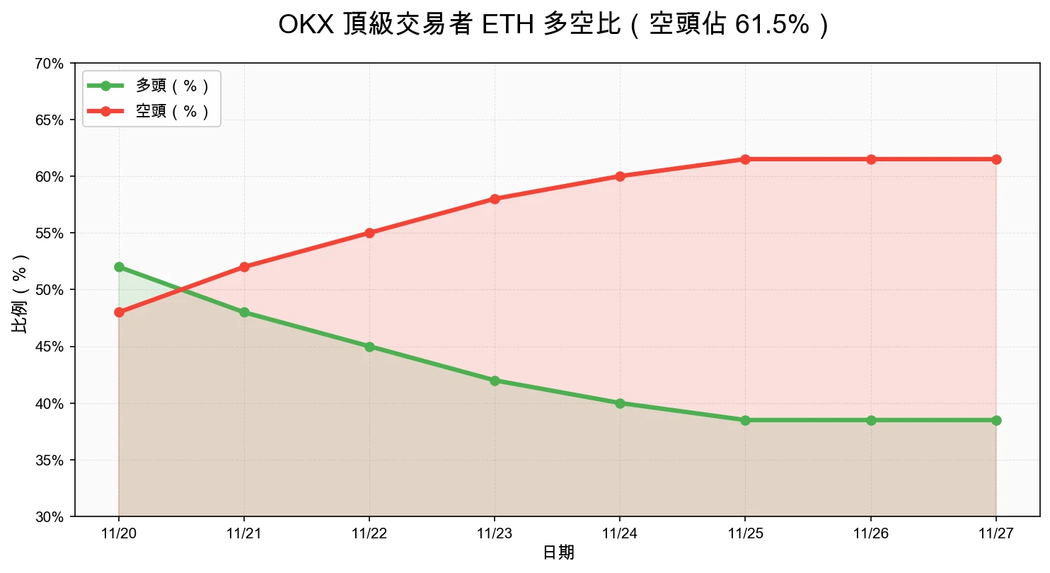鏈上資料顯示,長期持有者 11 月陸續買進約 13 億美元 ETH,認定 3,000 美元以下屬估值舒適區。與此同時,早期 ICO 參與者拋售 5,800 萬美元籌碼,OKX 頂級交易員多空比轉為空頭傾斜 23%。這種「囤幣+做空」組合好比買房同時重押火險,並非認定價格即刻崩跌,而是對短期波動高度提防。未平倉合約攀升至 358 億美元,若宏觀再現利空,清算鏈恐帶來劇烈震盪。