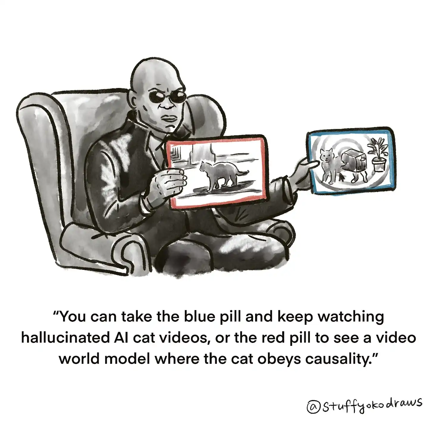 這些系統能夠在較長時間裡維持角色、物件與物理規律,使動作真正產生影響,讓因果得以展開。影片因此從一種媒介,轉變為一種可以構建事物的空間:機器人能夠在其中訓練,遊戲機制能夠演化,設計師能夠進行原型實驗,智慧體能夠通過「做事」來學習。