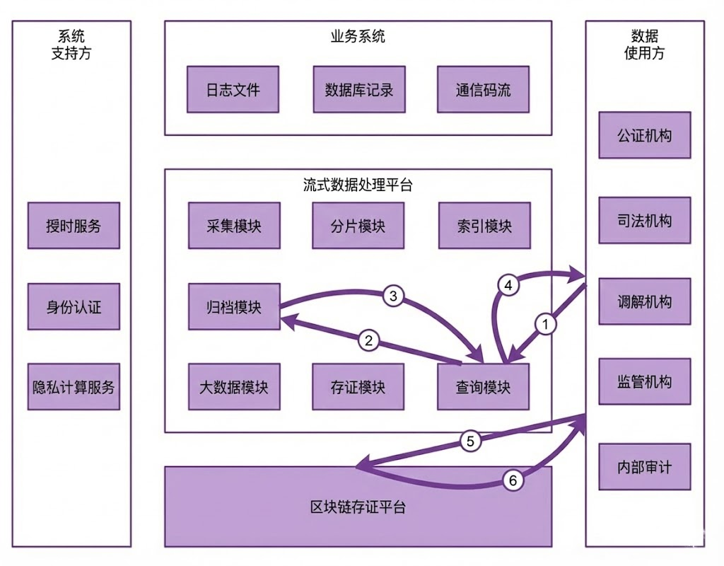 审计日志需保证全环节可追溯。政策要求存证行为过程可溯源,实践中需记录三类日志。第一类是操作日志,需要包含“操作用户、操作时间、数据 ID、操作类型(新增/修改/删除)”,日志不可篡改(采用区块链存证)。第二类是系统日志,需要记录节点同步、算法调用、密钥更新等系统行为,留存 ≥6 个月。第三类是审计日志,需要定期(每月)生成存证合规报告,包含“上链数据量、出证次数、异常数据量”,自动推送至合规部门。