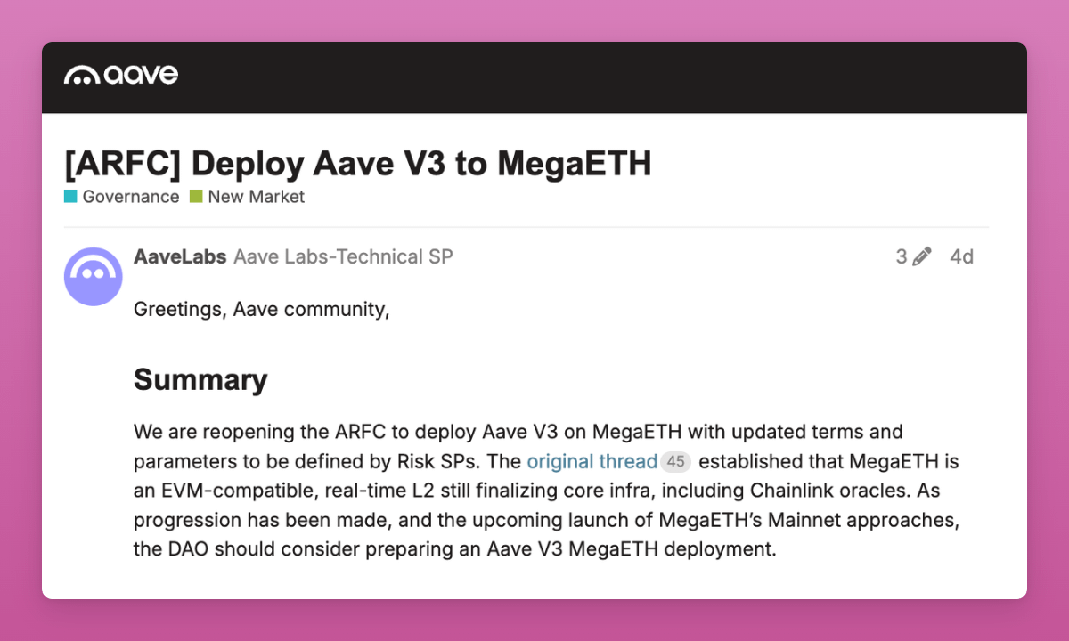 在 Aave Labs 提出一项在 MegaETH 上部署 Aave V3 的 DAO 提案的几天后,相关讨论随即展开。