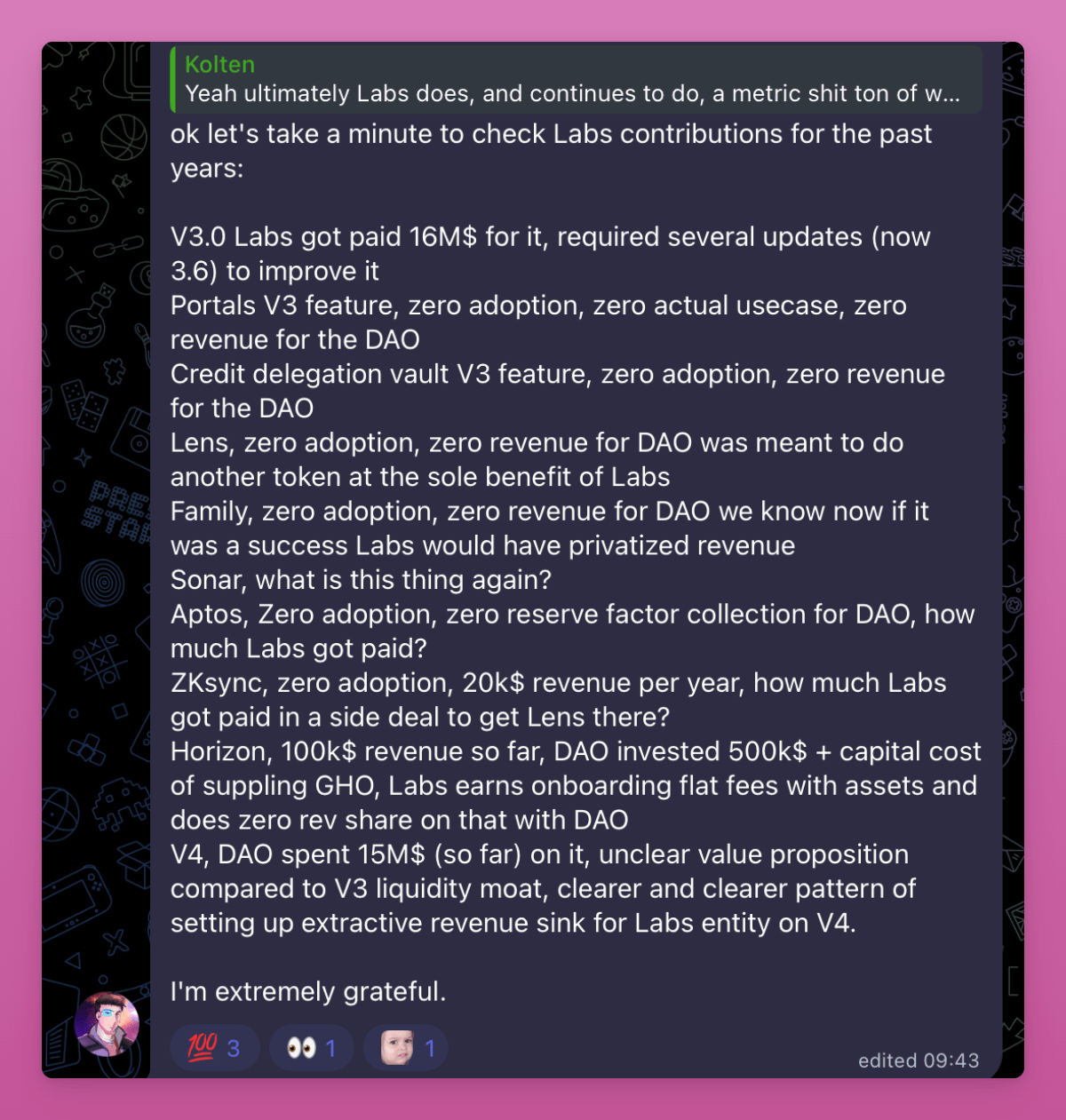 截至撰稿时,Aave Labs 唯一认同批评者观点的是沟通方面。