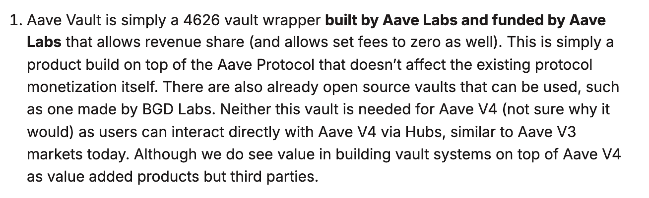 - “Aave 金库只是由 Aave Labs 构建并资助的 4626 金库包装器。 ”
