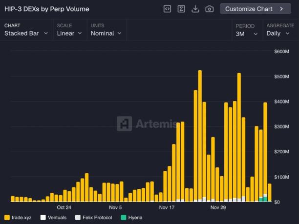 預計到 2026 年,HIP-3 市場的交易量將在 Hyperliquid 總交易量中佔據顯著份額。