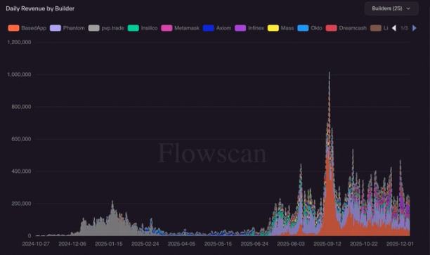 (根據 @hydromancerxyz 資料統計的 Builder Codes 收入)