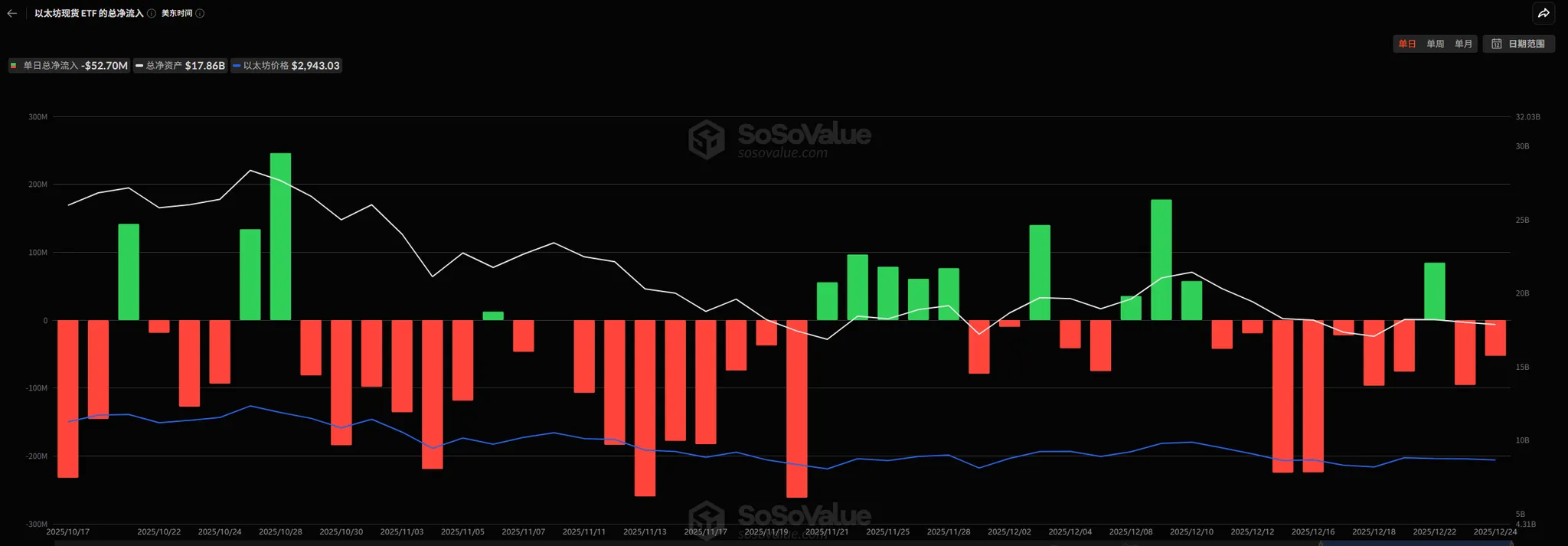 本周以太坊 ETF 净流出量为 - 1.3953 亿美元,相较于上周 5.875 亿美元的净流出规模,流出幅度明显减弱。以太坊价格本周呈震荡走势,未出现持续性下跌,与 ETF 流出收窄形成呼应。若后续能维持这一趋势,将为以太坊反弹行情提供有力支撑。