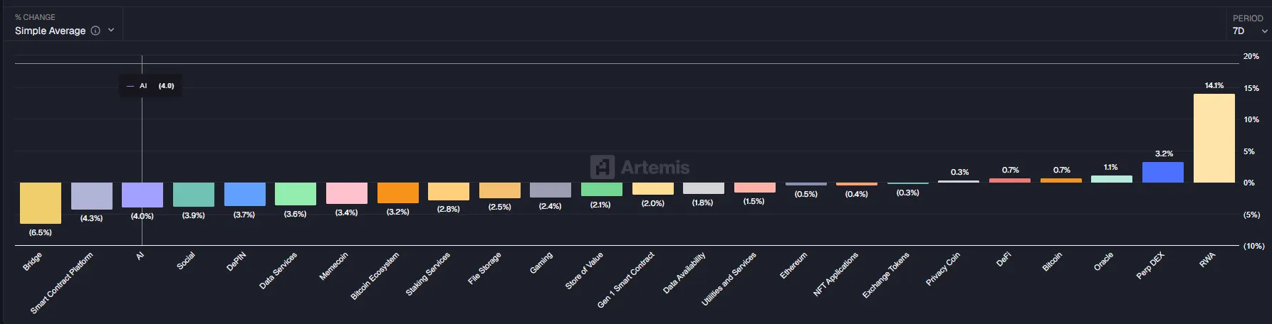 本周山寨市场整体呈震荡格局,部分代币逆势走高。受益于股市情绪边际转好,加密市场短期情绪与下行空间得到一定支撑。盘面表现较好的主要集中在小市值 MEME 币及高辨识度热点代币,但行情持续性较弱,难以形成板块联动效应。