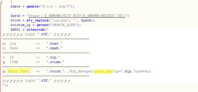 受害者输入的信息随后通过next.php文件中的脚本,发送至mail.php文件中指定的邮箱地址。