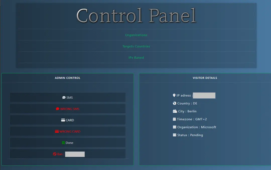 所有由攻击者控制的钓鱼页面所收集的数据,都会汇总到一个统一数据库中,并可通过其账户界面查看和管理。