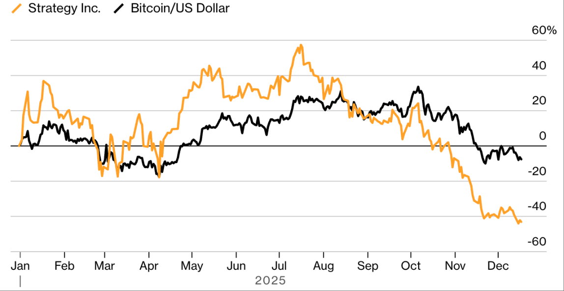 今年 Strategy 股价表现逊于比特币