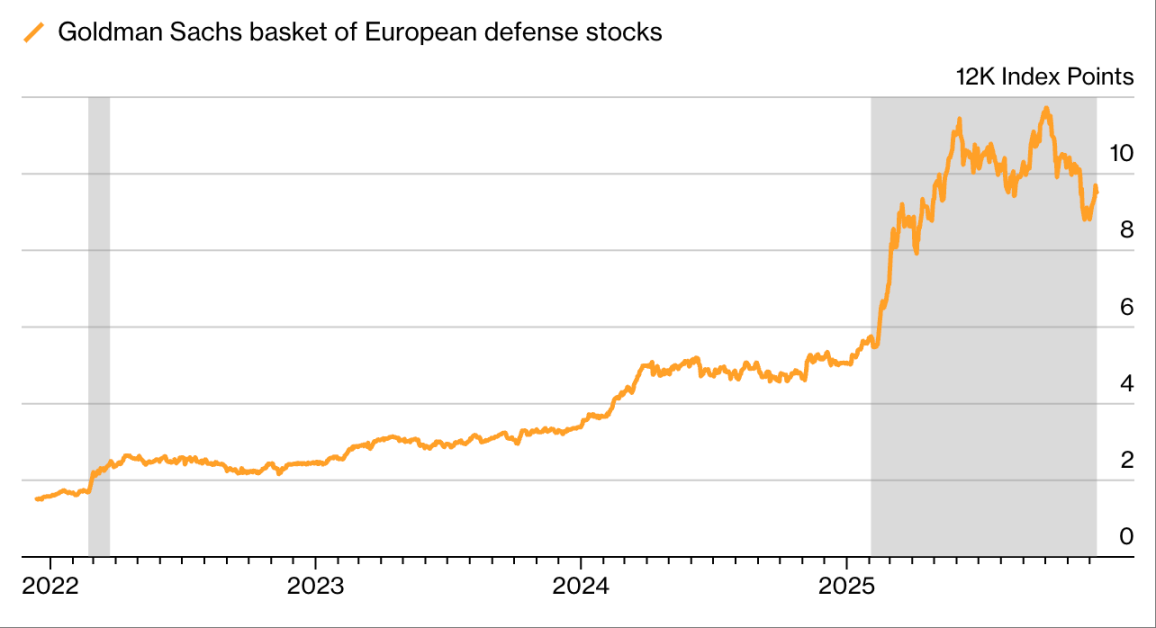 从护目镜制造商、化学品生产商,到一家印刷公司,与国防沾边的股票均被疯狂抢购。截至 12 月 23 日,彭博欧洲国防股指数年内涨幅超 70%。这股热潮还蔓延至信贷市场:即便是与国防「间接相关」的企业,也吸引了大批潜在贷款人;银行甚至推出「欧洲国防债券」—— 以绿色债券为模板,但资金专门用于武器制造商等主体。这一变化标志着「国防」从「声誉负债」重新定位为「公共产品」,也印证了一个道理:当地缘政治转向时,资本流动的速度往往快于意识形态转变。