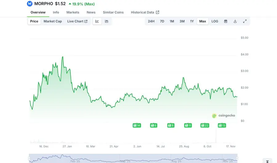 $MORPHO 在 规模、机构采用和 TVL 引力方面 占据主导地位 ——但仍然受到 FDV 扩张和解锁风险 的结构性负担 。