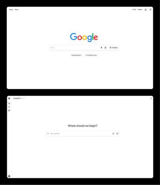 如今最普遍的人工智慧,看起來還像過去的 Google 搜尋。引用麥克魯漢的話:「我們總是透過後視鏡駛向未來。」今天,我們看到的是模仿 Google 搜尋框的 AI 聊天機器人。我們正深陷於每一次技術變革中都會出現的那種令人不適的過渡期。