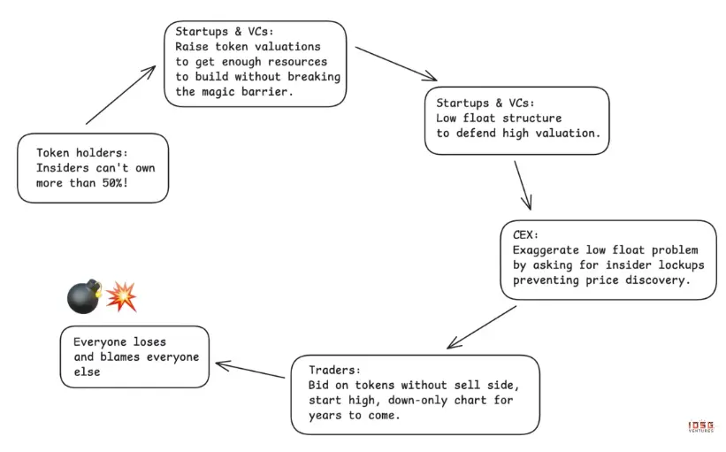 问题不止是供应过剩,更糟糕的是,造成这个问题的机制出现至今,基本没什么改变。项目照样发币,不管产品有没有市场,把发币当成必经之路而非战略选择。随着风投资金枯竭、一级市场投资萎缩,很多团队把发币当成了唯一的融资渠道或者为内部人制造退出机会的办法。