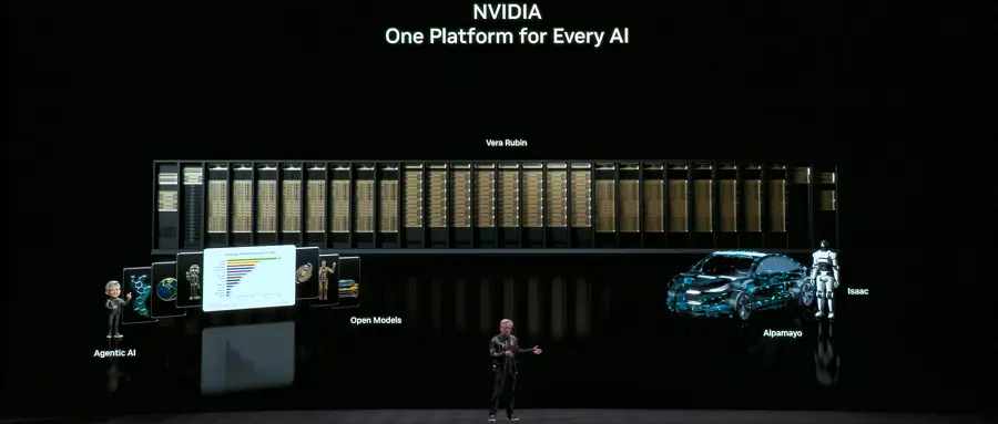 芯东西拉斯维加斯1月5日报道,刚刚,英伟达创始人兼CEO黄仁勋在国际消费电子展CES 2026上发表2026年首场主题演讲。黄仁勋一如既往穿着皮衣,在1.5小时内连宣8项重要发布,从芯片、机架到网络设计,对整个全新代际平台进行了深入介绍。