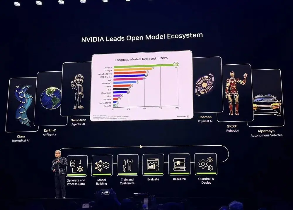 2025年,英伟达是Hugging Face上开源模型、数据和配方的最大贡献者,发布了650个开源模型和250个开源数据集。