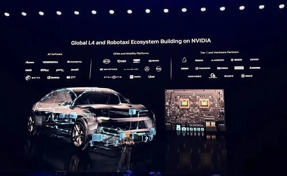 黄仁勋称,搭载Alpha-Mayo的梅赛德斯奔驰CLA已经投产,还刚刚被NCAP评为世界上最安全的汽车。每条代码、芯片、系统都经过安全认证。该系统将在美国市场上线,并将在今年晚些时候推出更强驾驶能力,包括高速公路脱手驾驶,以及城市环境下的端到端自动驾驶。