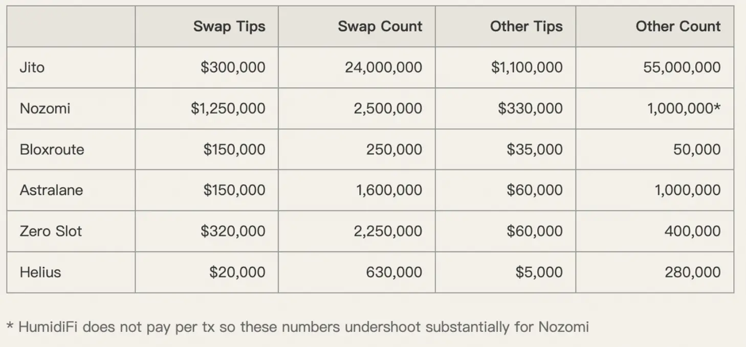 Axiom 用户在 Nozomi、Zero Slot 等落地服务上支付的小费远超市场平均水平。应用端正是利用了用户对「速度」的极度敏感,在没有任何负面反馈的情况下,完成了对用户的双重收费