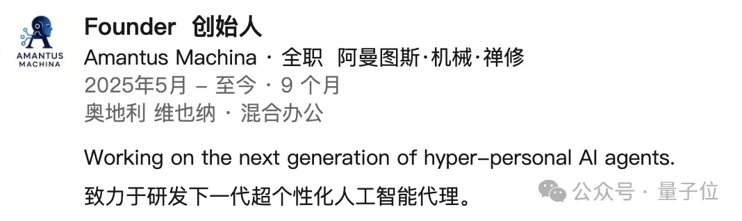 领英上,他的最新身份是Amantus Machina的创始人,致力于研发下一代超个性化AI Agent。