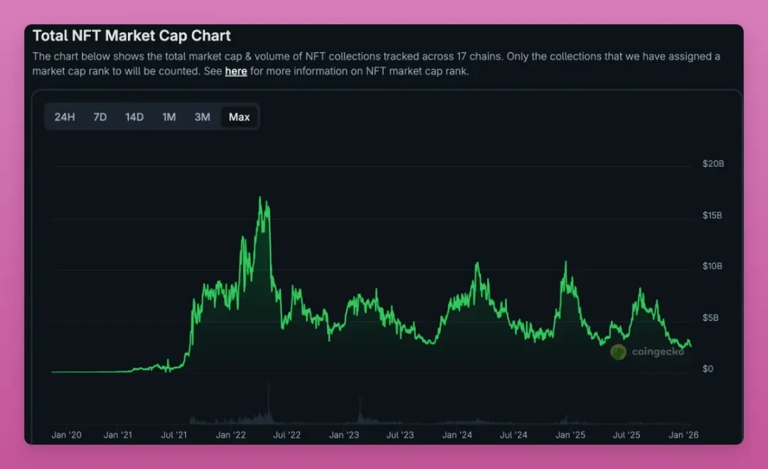 非同质化代币市场也遭受重挫。与普遍认知不同的是,非同质化代币市场虽曾迎来过一波行情,但始终未能维持涨势。