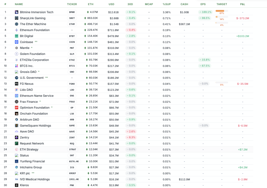 图6: Strategicethreserve官网全球TOP100 ETH财库上市公司统计图