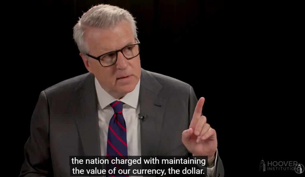 并且,在我们接下来的对话中,可能重要的是要重复,不仅“通胀是一种选择”,而且“稳健的美元也是一种选择”。沃尔克就在我们这一代人的记忆里做到了。这是已经实现了的。我们遭受了通胀,然后美联储又把它控制住了。好的,再来一个基础问题。