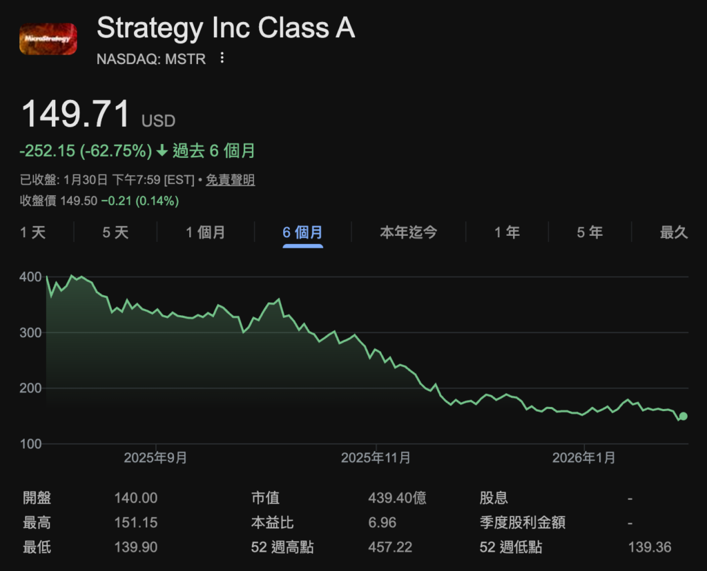然而,BTC 持續的跌勢對公司營運仍帶來挑戰。該公司股價在過去半年已經下跌超 60%。當股價相對於淨資產價值越來越低時,公司將更難以透過市價增發(ATM)方式有效籌資,這或限制 Michael Saylor 後續購入比特幣的能力。