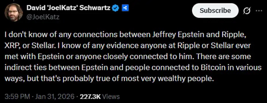 那么这能说明爱泼斯坦的邪恶也存在于加密货币领域吗?David Schwartz 也表示,对于大多数超级富豪来说,与比特币间存在关联可能都是非常常见的。