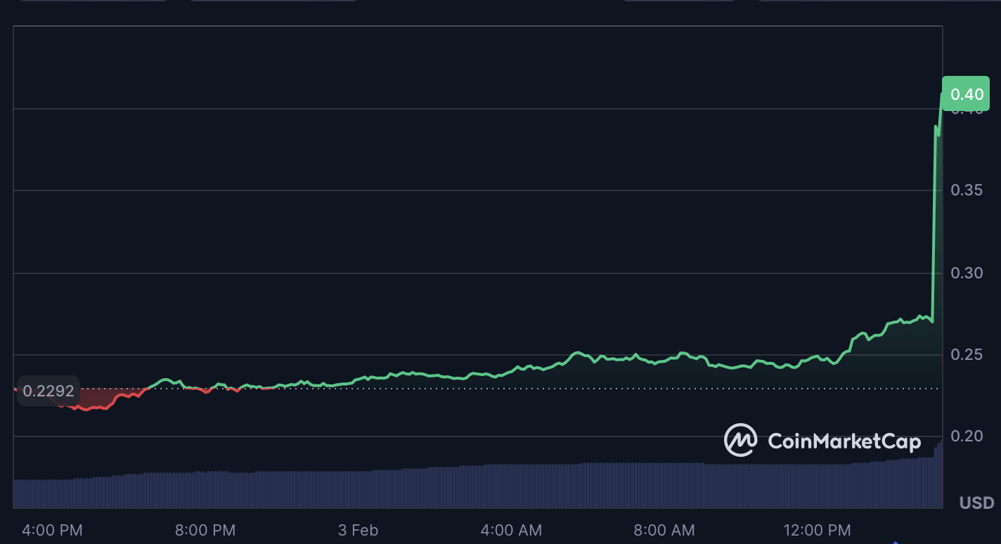 BIRB 在短時間內觸及 0.4 USDT,在 15 分鐘內的漲幅超過 70%。當前來到 0.408 美元。