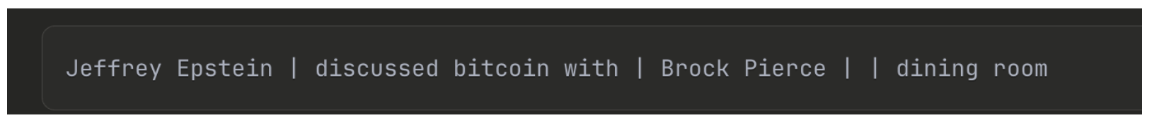 我们的数据库只处理了众议院监督委员会的文件,能拼出来的 Pierce 线索到这里就断了。但就在这篇文章写作期间,美国司法部放出了另一批超过 300 万页的爱泼斯坦文件,Decrypt 根据这批新文件做了 报道 ,揭示出两人的关系比数据库里显示的要深得多。