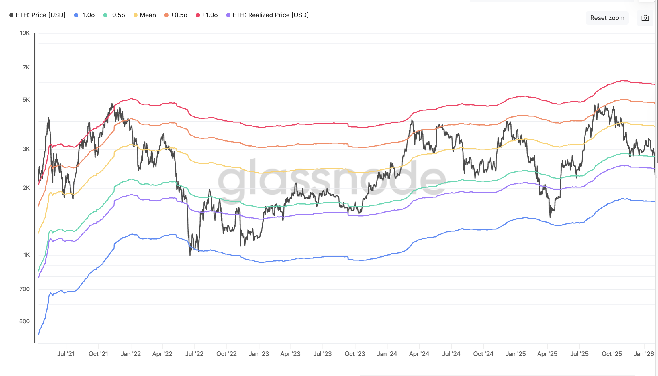 以太坊技術面與鏈上數據同步轉弱,市場分析指出,若賣壓持續發酵,以太幣在 2 月恐面臨跌破 2,000 美元、進一步測試關鍵支撐區間的風險。