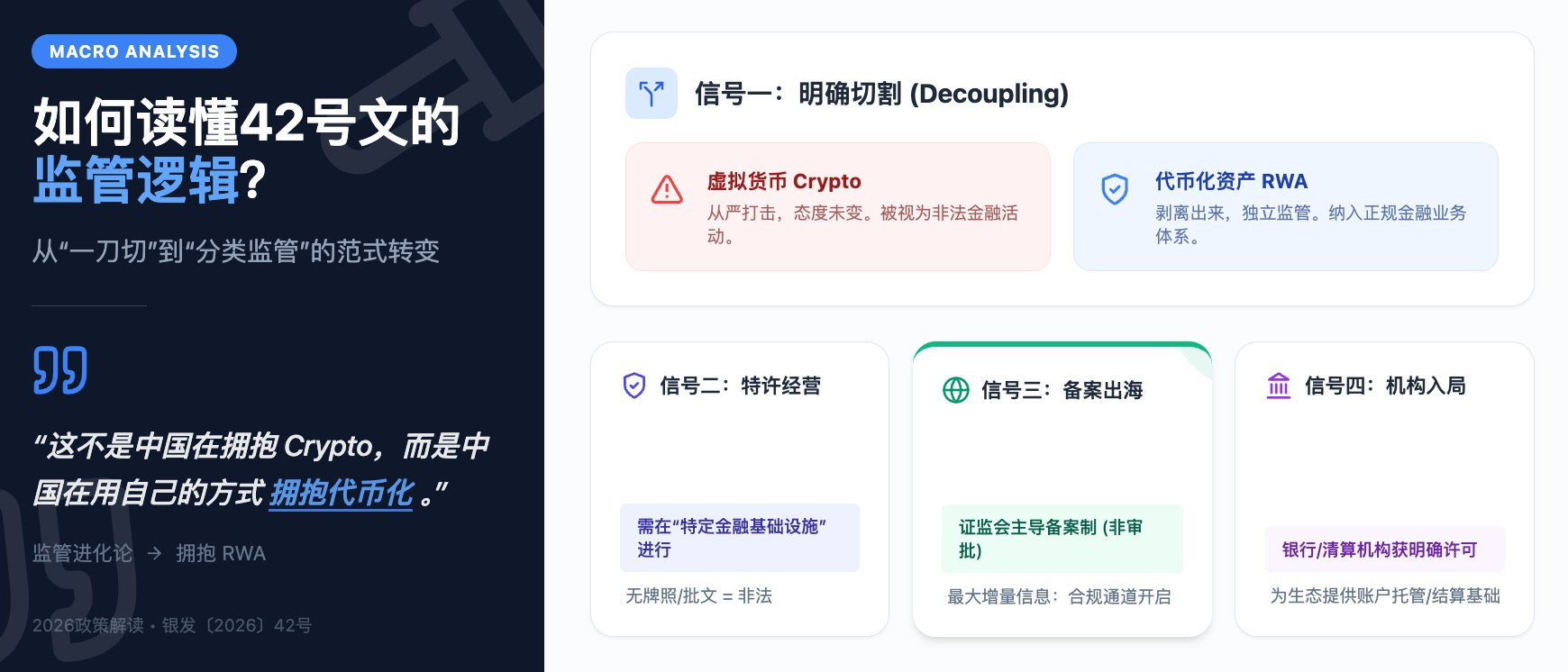 换句话说,42号文的逻辑不是"禁止RWA",而是"RWA必须在我的场子里玩"。