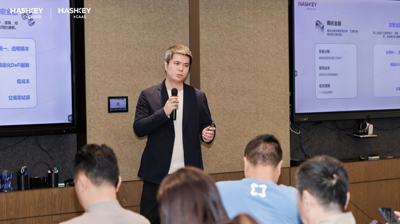 HashKey CaaS 高级业务发展经理余意系统地展示了HashKey CaaS的一体化机构服务体系,如何从底层基础设施到上层收益管理的完整布局和专业能力。