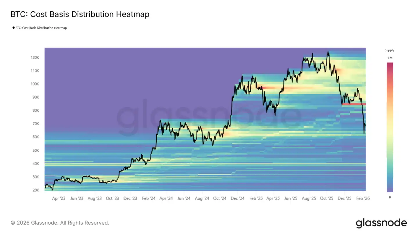 比特幣在 6 萬至 7.2 萬美元區間防守,機構資金同步淨流出,現貨成交冷淡,期貨降溫。8.2 萬至 9.7 萬美元套牢盤形成明顯阻力,市場需求不足,價格難以主動突破。本文源自 Glassnode 所著