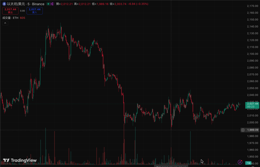 以太坊則是在昨日下午三點大跌後,又在昨晚跌破 2000 美元大關,最高在今早漲到 2048 美元無法突破,暫報 2026 美元。相較於比特幣的純粹橫盤,昨日以太坊大跌與到2000美元區間的測試,都呈現出一個上行阻力巨大,無法突破的狀態。