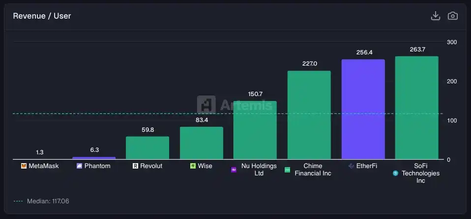 那 EtherFi 呢?人均 256 美元,幾乎與 SoFi 持平。