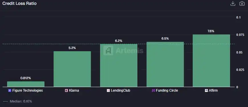 在傳統金融科技這邊:Funding Circle 的「淨利息收益率(net interest margin)」為 9.35%(這與其更接近私募信貸的業務模式有關);LendingClub 為 6.18%;Affirm 雖然是 BNPL 公司而非傳統放貸機構,但仍能獲得 5.25%。
