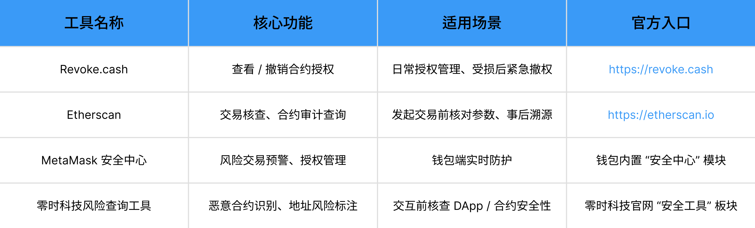 为帮助用户日常做好安全防护、快速处置风险,精选 4 款实用工具,覆盖授权管理、交易核查、风险预警等核心场景,均为行业公认的安全工具: