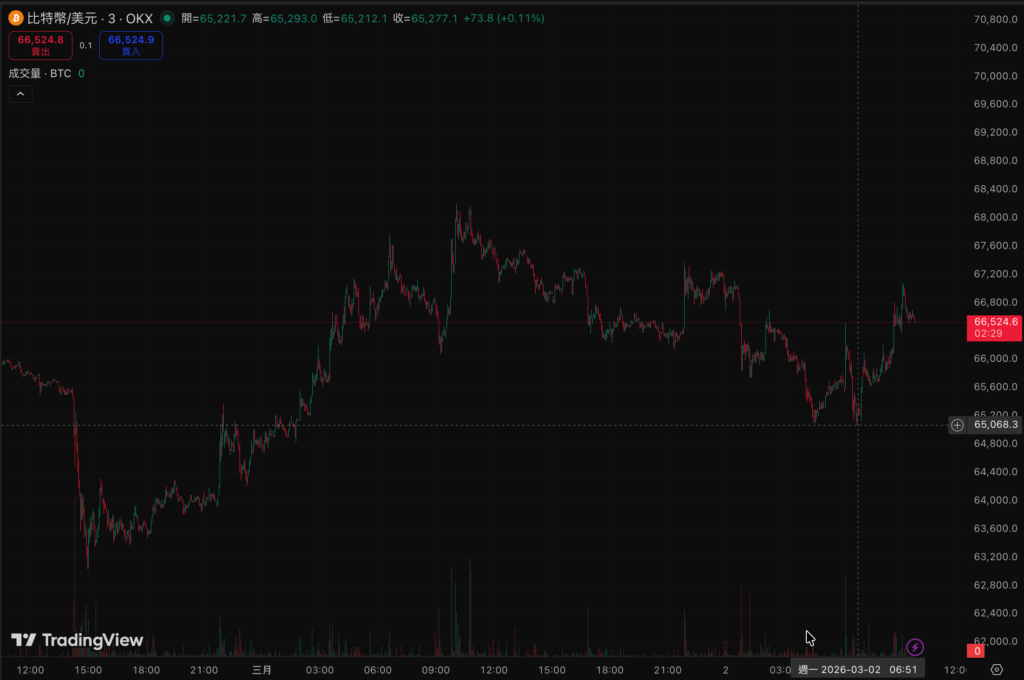 受地緣衝突升溫衝擊,比特幣在 228 期間從 70,000 美元急跌至 63,000 美元,而在一日多盤整後,最高回檔到68000美元,而在今日早晨五點一度跌至65293美元水位,現報 66627 美元。以太坊則是在清晨差點跌破1900大關,現報 1962 美元。