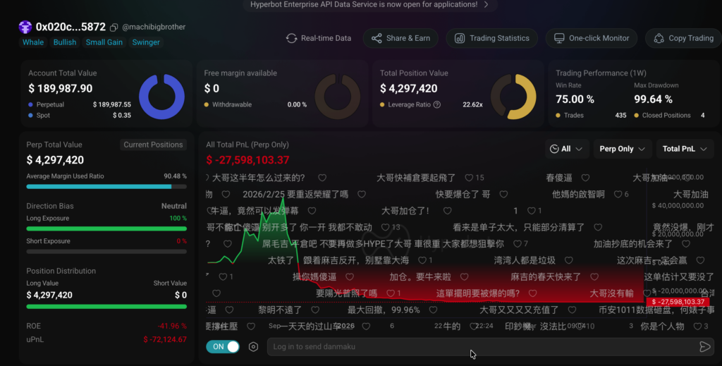 Hyperliquid 爆倉常客:累計虧損逾 2760 萬美元