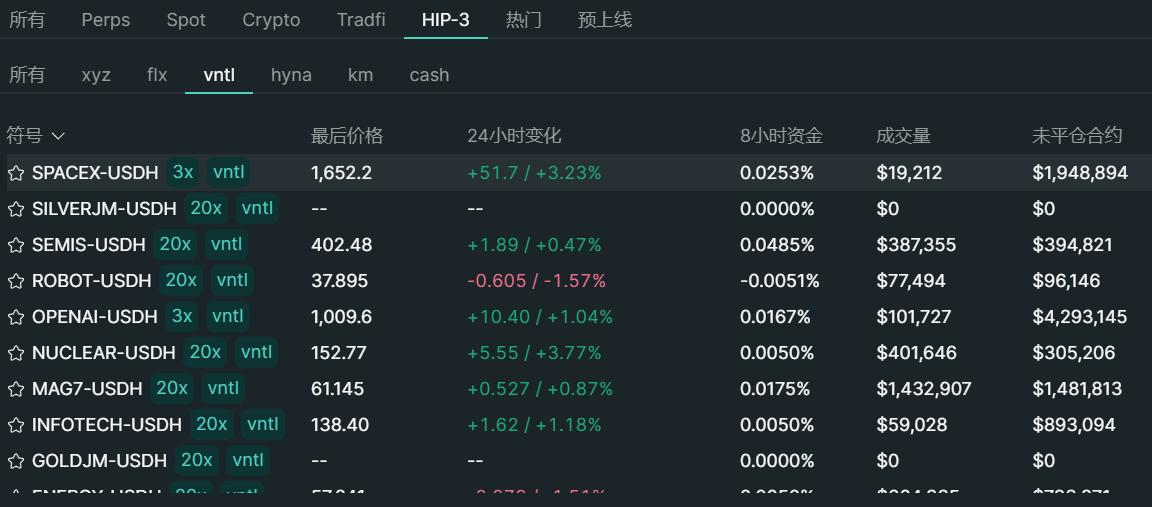 一种是以 Hyperliquid 为代表的永续合约模式,譬如基于 HIP-3 框架,开发者可以自定义部署 OpenAI、SpaceX 等 Pre-IPO 资产的永续合约产品。核心逻辑是将 Pre-IPO 与永续合约结合,不涉及真实的股权交割,本质上绕开股权本身,仅提供价格敞口,让用户押注 SpaceX、OpenAI 等公司的估值涨跌。