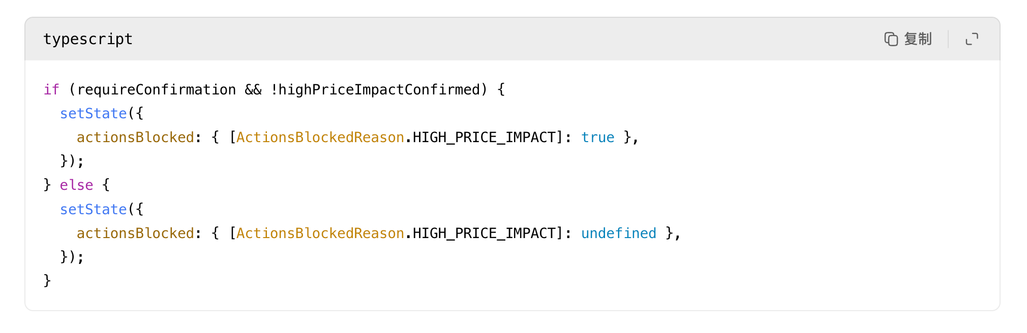 Aave 界面确实有高价格冲击警告,但它 不是一个硬性的熔断开关 。当价值损失超过 20%时,它变成一个确认复选框。